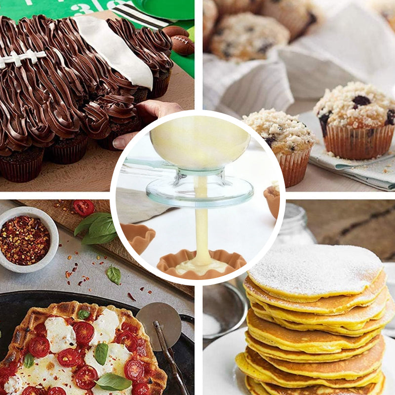 EFFICIENT BATTER DISPENSING - This handheld dispenser provides controlled, mess-free pouring for various batters. Simply press the handle to release the precise amount directly onto your cooking surface or into molds.